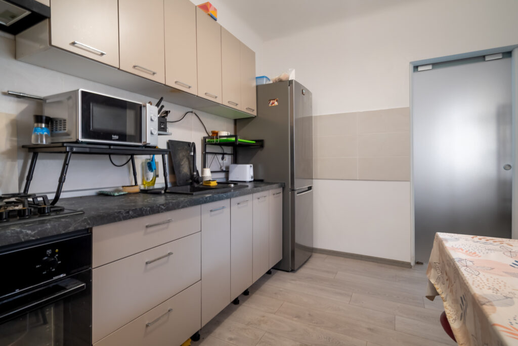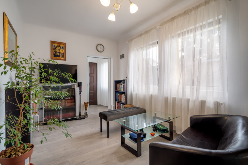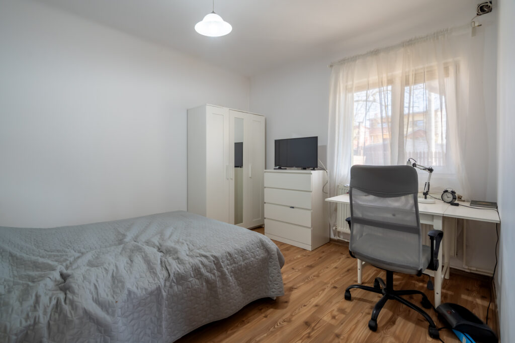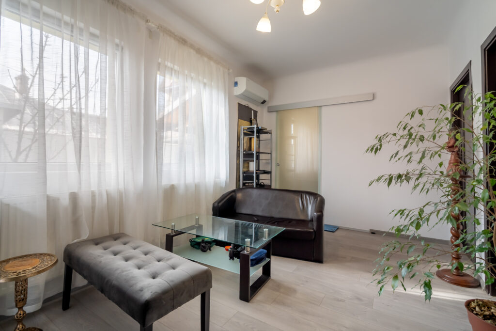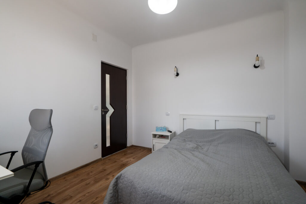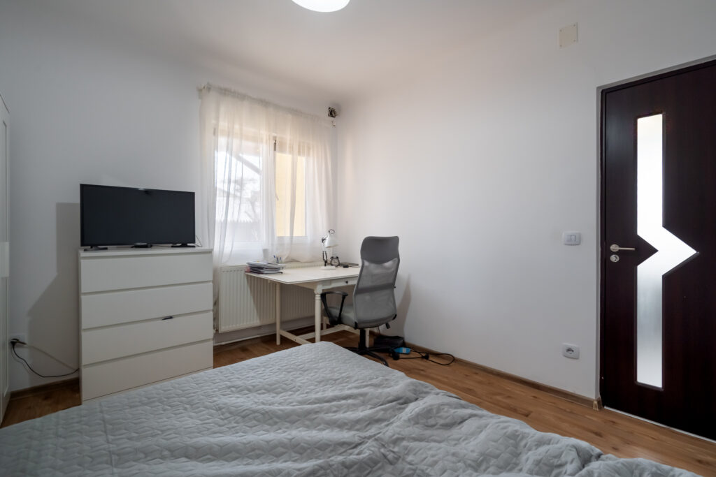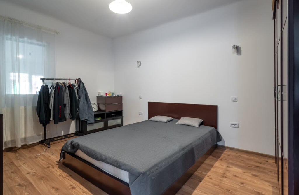 Locuința are o suprafață de 71,66 mp, cu living și două dormitoare, fiind ideală pentru o familie care caută liniște și acces rapid la facilitățile orașului. Casa este renovată și într-o stare excelentă, racordată la toate utilități: apă, gaz, canalizare și energie electrică.