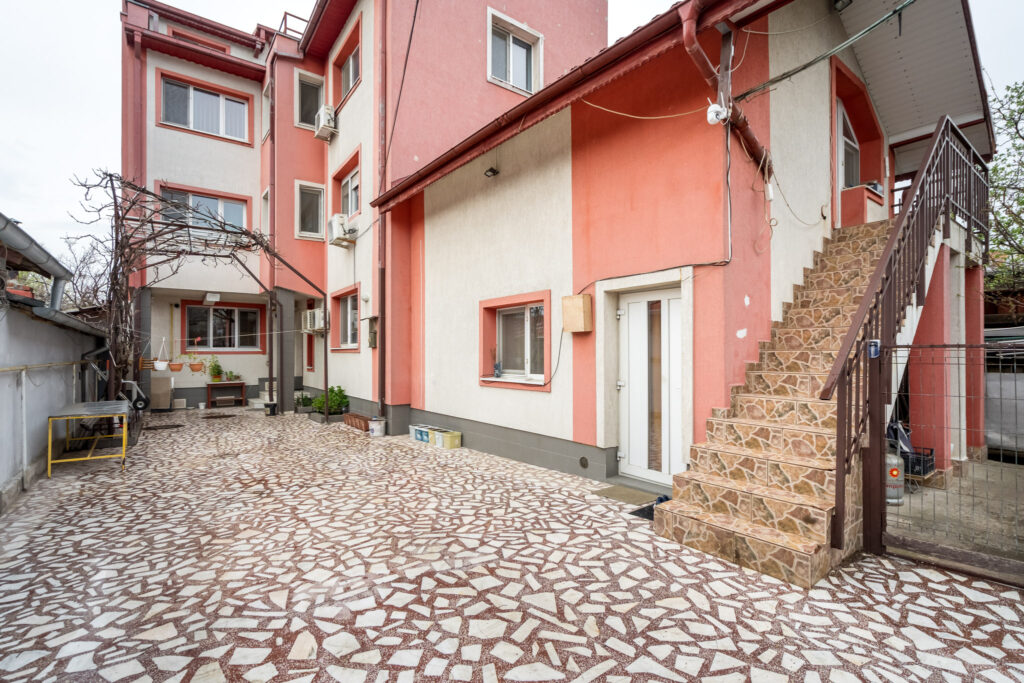 Are curte libera de aproximativ 170 mp, cea mai mare parte fiind folosita pentru parcare.